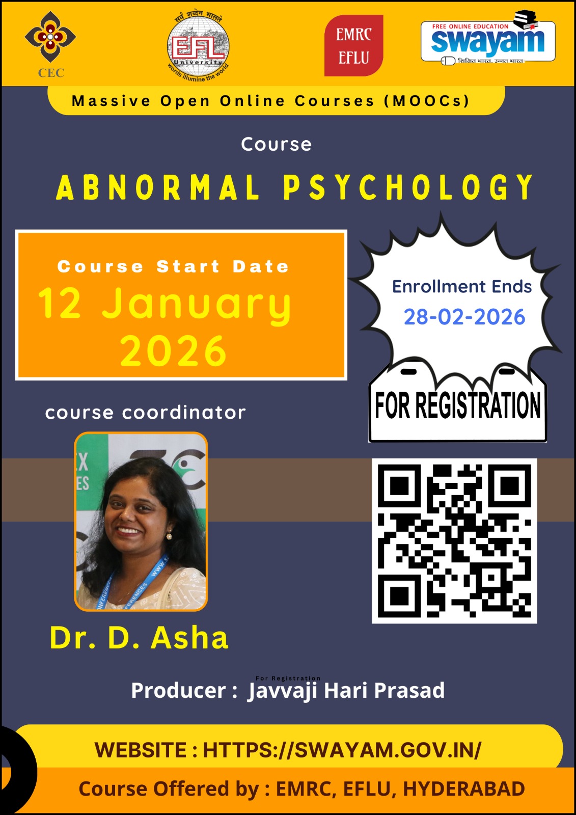 EMRC's dedication to the SWAYAM initiative underscores its commitment to making quality education accessible to learners across the country through innovative and comprehensive online courses.